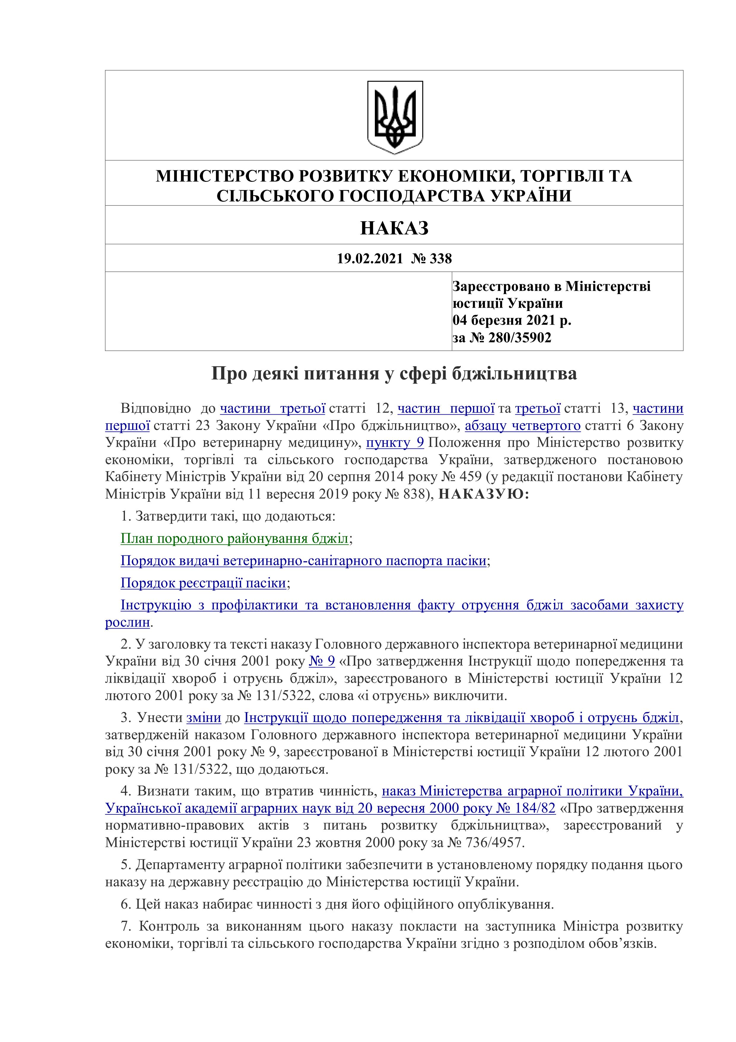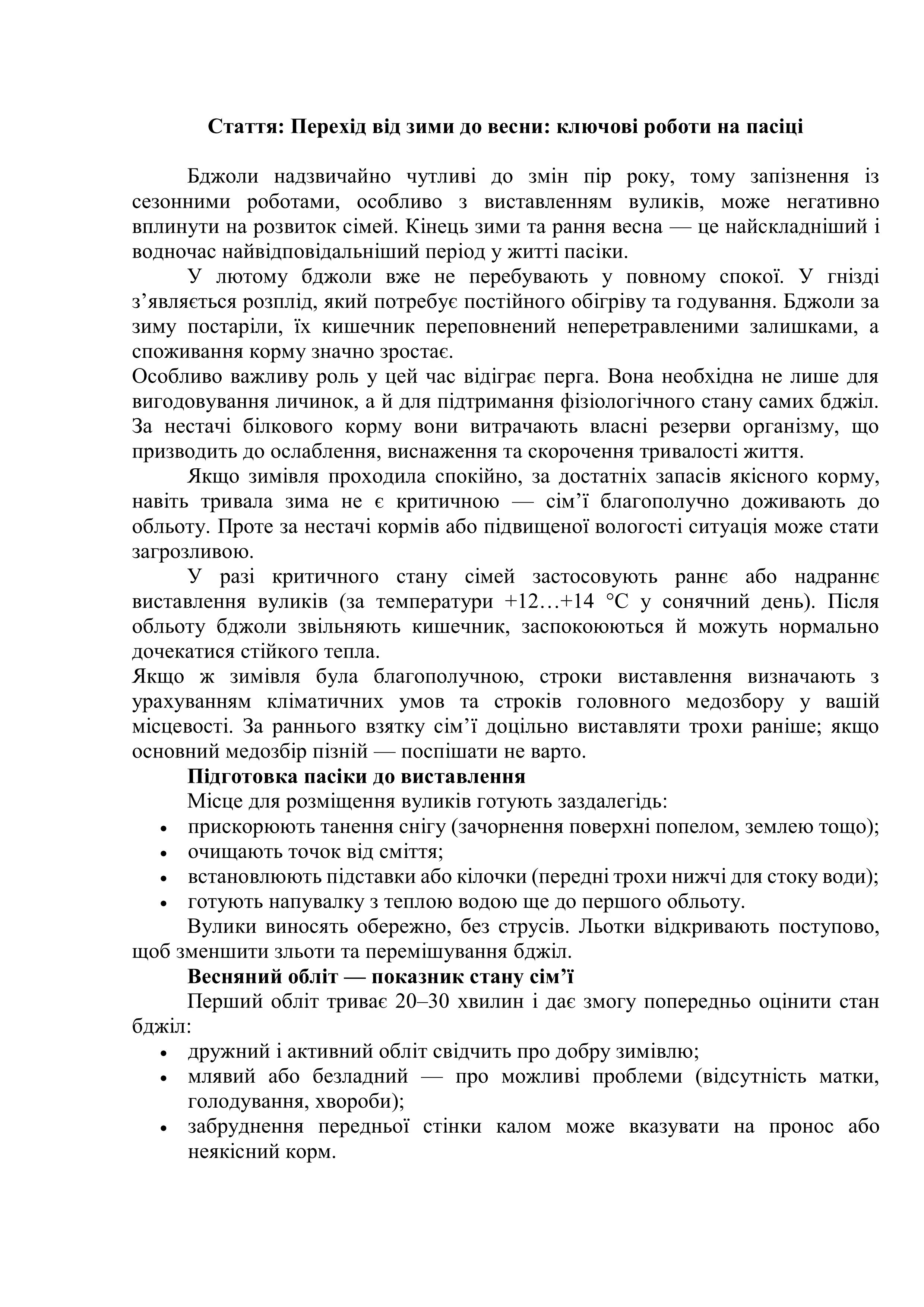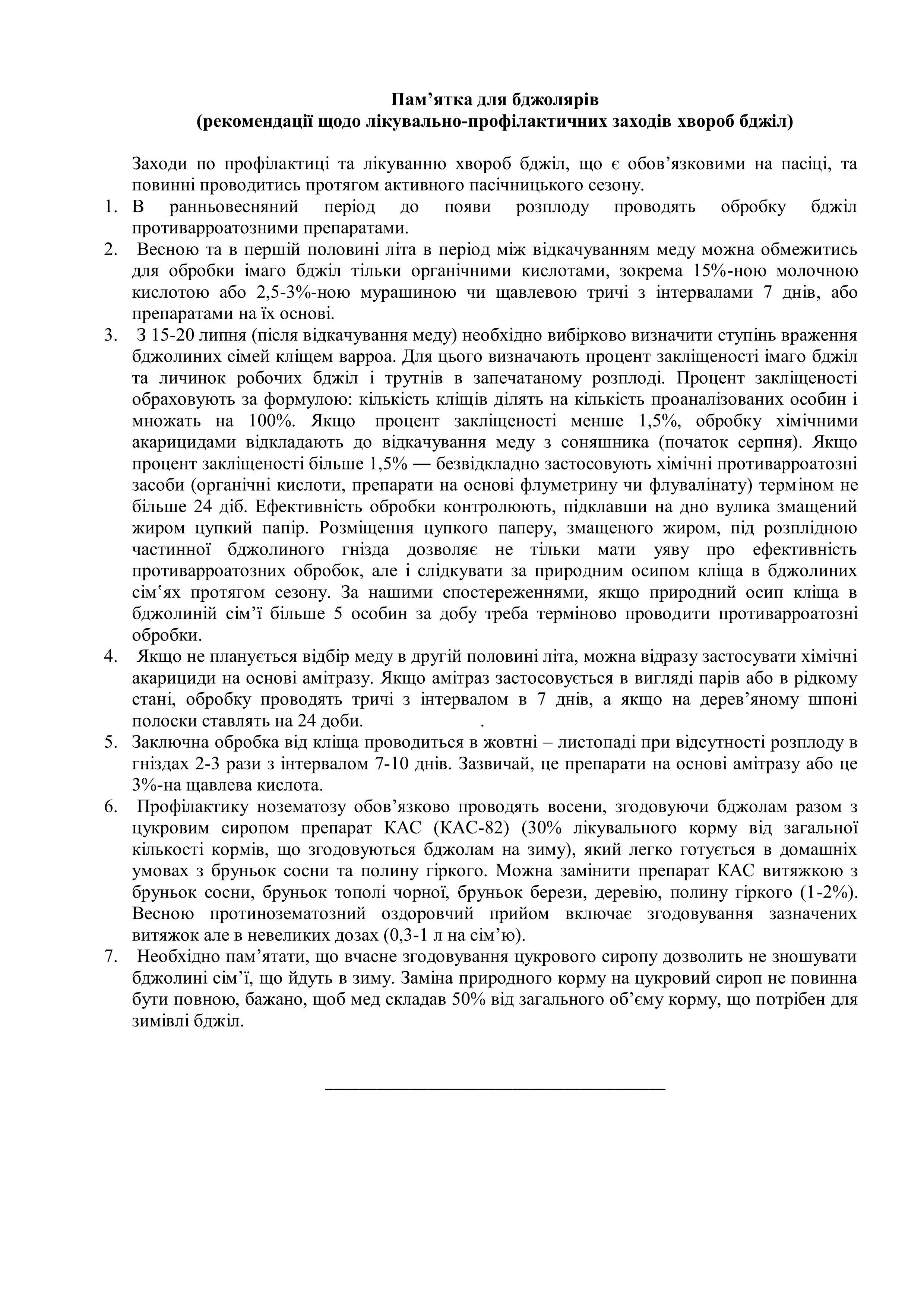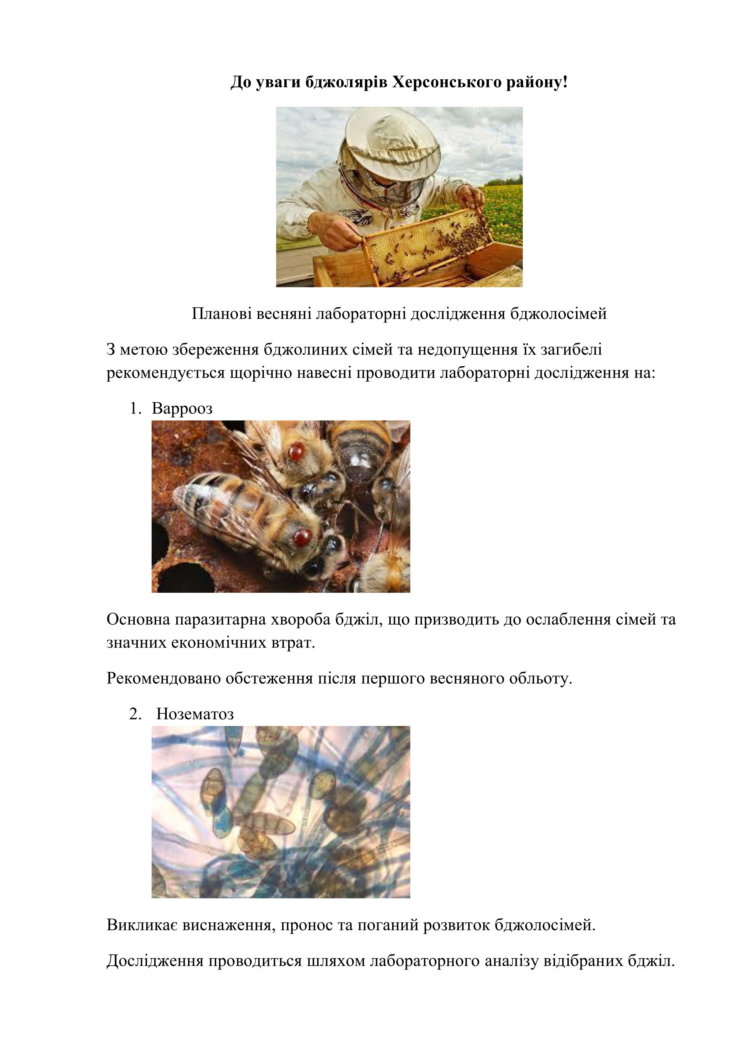Інформація стосовно дотримання законодавства у галузі бджільництва.
