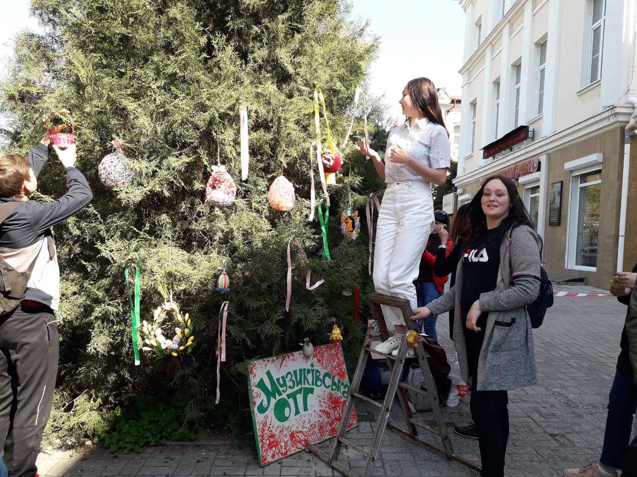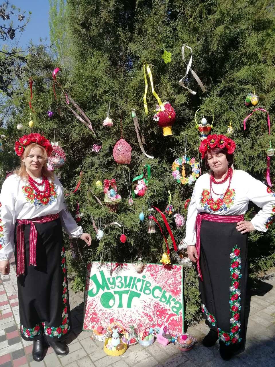 Під час концертної програми на прилеглій території спеціаліст з молодіжної політики Котова Н.М. та директор Східненського будинку культури Позняк С.В., разом з дітьми прикрасили писанкове дерево Музиківської ОТГ. Великодні поробки виготовили діти з шкіл, дитячих садочків, жителі громади та працівники сільської ради.