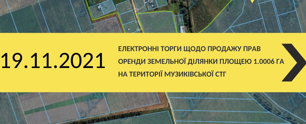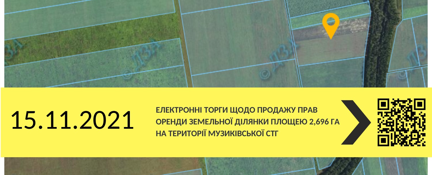 Запрошуємо взяти участь в електронних торгах щодо продажу прав оренди на земельну ділянку сільськогосподарського призначення площею 2.696 га на території Музиківської СТГ.
