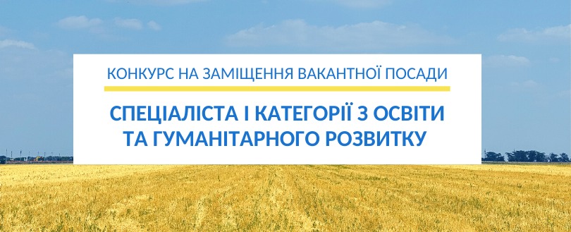 Музиківська сільська рада оголошує конкурс на заміщення вакантної посади на час декретної відпустки основного працівника: спеціаліста І категорії з освіти та гуманітарного розвитку відділу освіти та гуманітарного розвитку Музиківської сільської ради