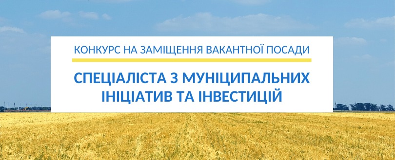 Музиківська сільська рада оголошує конкурс на заміщення вакантної посади: головного спеціаліста з муніципальних ініціатив та інвестицій відділу земельних відносин, містобудування, архітектури та житлово-комунального господарства Музиківської сільської ради